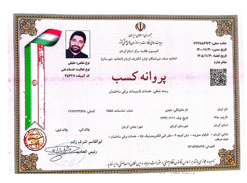 پروانه کسب خدمات تاسیسات برق ساختمان
