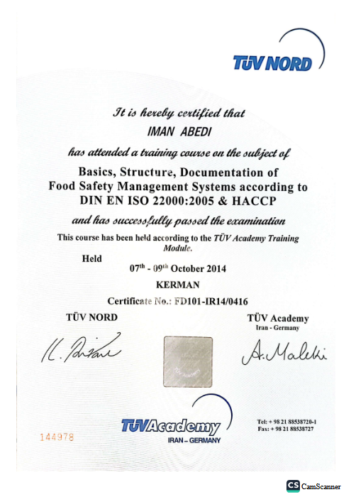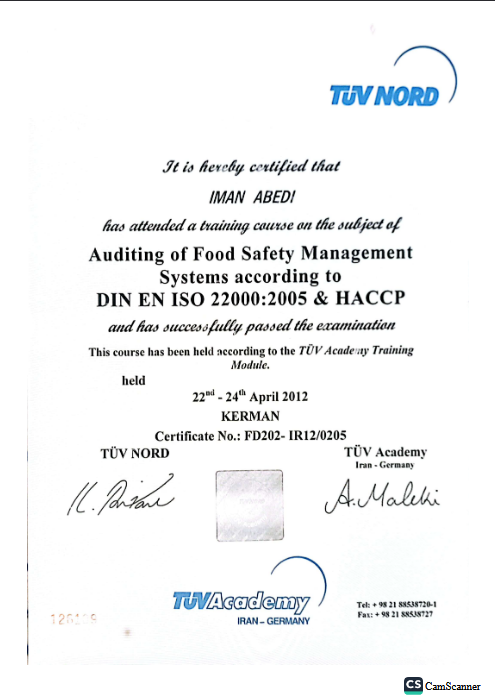 مدرک ایزو HASSP و 22000 از کمپانی توف نورد