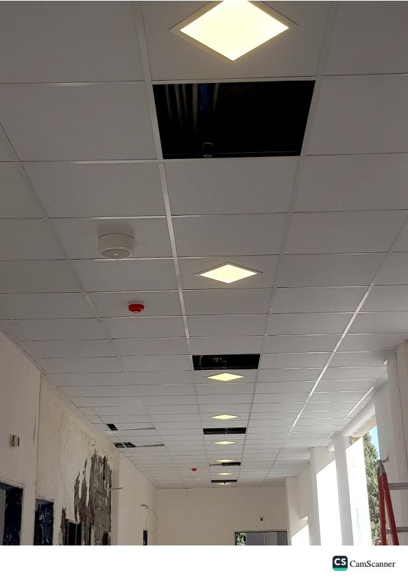در بخش برق و روشنایی، کلیه پریزها، روشناییها و تابلوها نصب و راهاندازی شدند. سیستم دزدگیر و اعلام حریق بهصورت کامل اجرا شد تا ایمنی محیط تضمین شود. همچنین، دوربینهای مداربسته نصب و راهاندازی گردیدند تا کنترل و نظارت بر فضاها به بهترین شکل ممکن انجام گیرد. سیستمهای اسپلیت برای تأمین سرمایش و گرمایش مناسب کلاسها و سالنها نیز نصب و راهاندازی شدند.