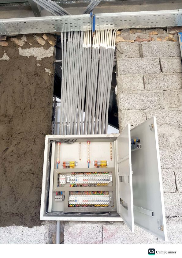 در بخش تأسیساتی، عملیات لولهگذاری و کابلکشی بهطور کامل انجام شد و مسیرهای لازم برای تمامی تجهیزات آماده گردید. کلیه نصبیجات از جمله تابلوها، کلید و پریزها، دتکتورها و تجهیزات جانبی نصب و تست شدند تا عملکرد همه سیستمها بهطور کامل بررسی شود.